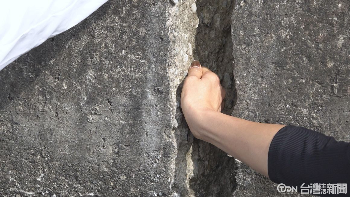 ▲牆面出現明顯變形,上頭的裂縫比一個人的拳頭還寬/記者 陳柏翰攝