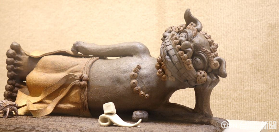 ▲陶藝家邱世章在葫蘆墩文化中心舉辦個展機不可獅/記者 林佳樺攝