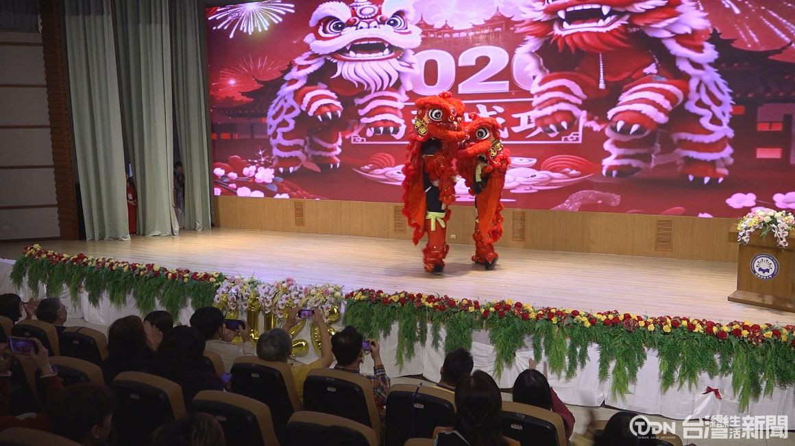 學生舞弄醒獅出場,獅子活靈活現,讓現場頓時洋溢年節氣氛,霧峰區朝陽科技大學目前有一千多位國際學生,行銷與流通管理系這天特別舉辦跨年活動,希望讓他們感受在台灣過節氣氛與熱鬧。