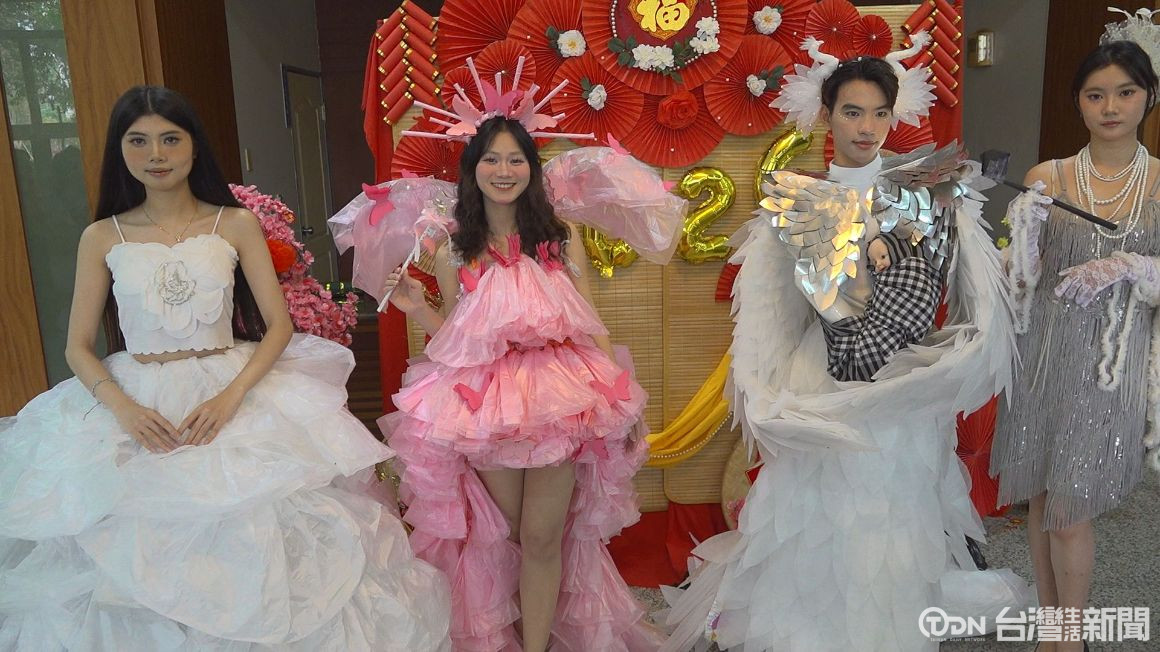 為了讓國際學生親身感受台灣年節的熱鬧與溫度,霧峰區朝陽科技大學行銷與流通管理系這天特別舉辦跨年活動,吸引近500位來自越南、緬甸等國的國際學生齊聚同歡,今年還特別規劃了一場「永續時尚服裝設計走秀競賽」,有人以回收塑膠袋、廢布料等素材,打造出造型前衛、線條立體且質感輕盈的永續服飾,驚豔全場。