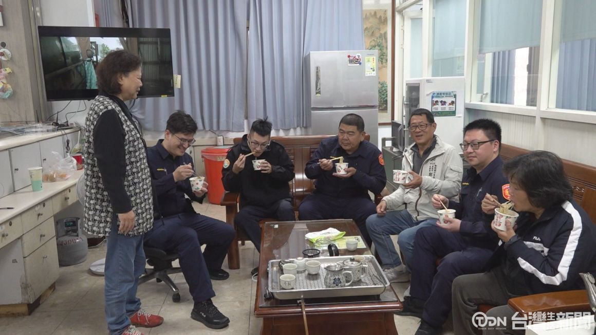 ▲義煮南投意麵慰勞中興警分局員警,讓第一線警察享用熱騰騰的暖心美食/記者 蔡育楷 攝