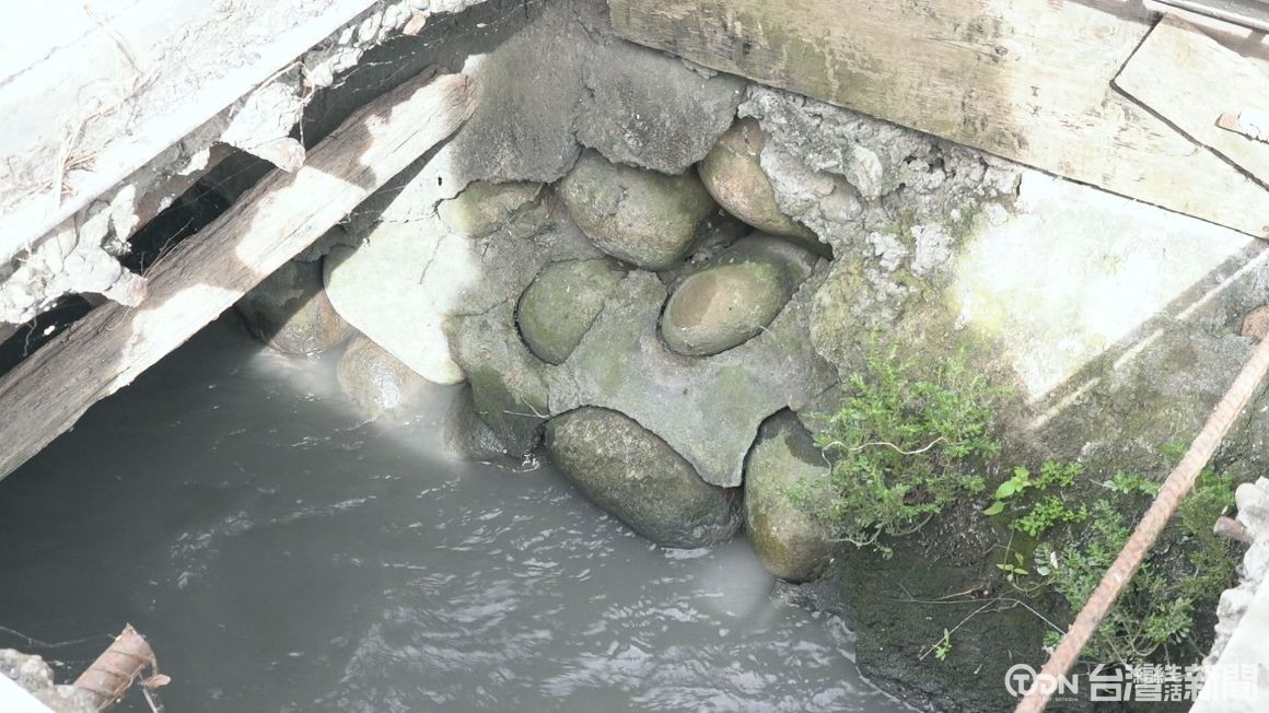 ▲大甲區中山路二段566巷內,由於底下的灌溉溝渠,早期是以砌石搭建成護岸,長久下來,護岸早已老化破損/記者 陳柏翰攝