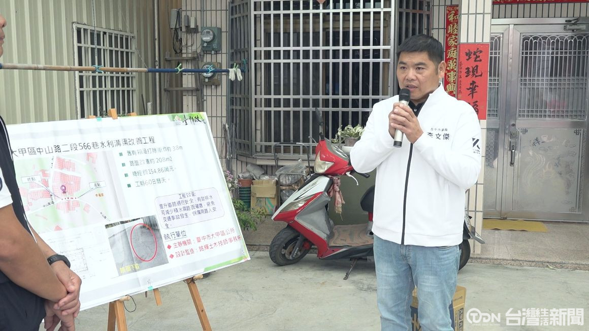 大甲區中山路二段566巷內的灌溉溝渠,由於早期是以砌石搭建成護岸,但長長久使用下來,早已老化破損,不僅路基被掏空、路面也有塌陷狀況,讓居民每天進出提心吊膽,為此,民代這天也特別邀集相關單位到場會勘,並爭取經費改善。