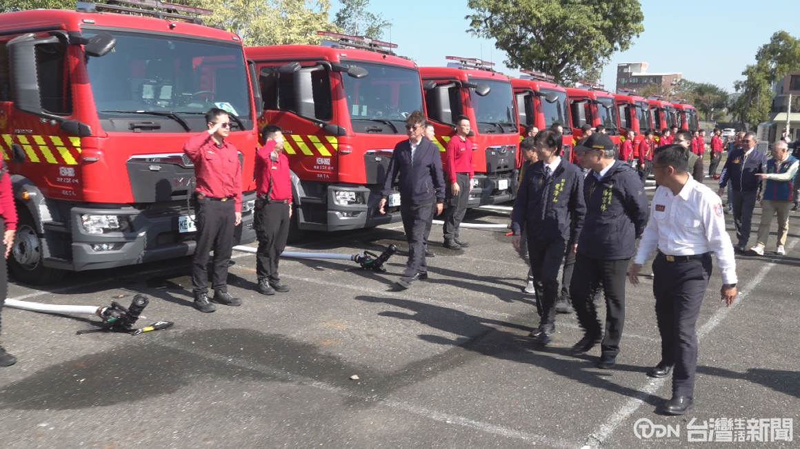 ▲臺南市政府消防局爭取中央補助編列1億3千多萬經費,購買3種類型16輛全新消防車。/記者 蘇英豪攝