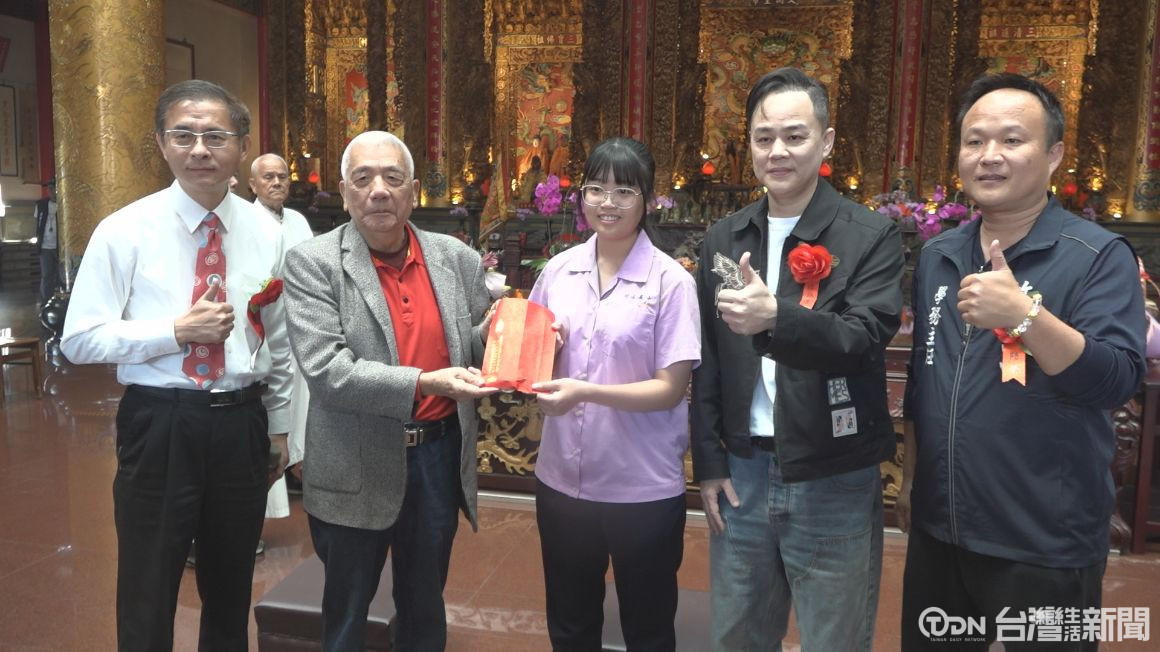 ▲克明宮同時也致贈每位學生一套文昌筆,祝福學生考試順利。/記者 周有勝 攝