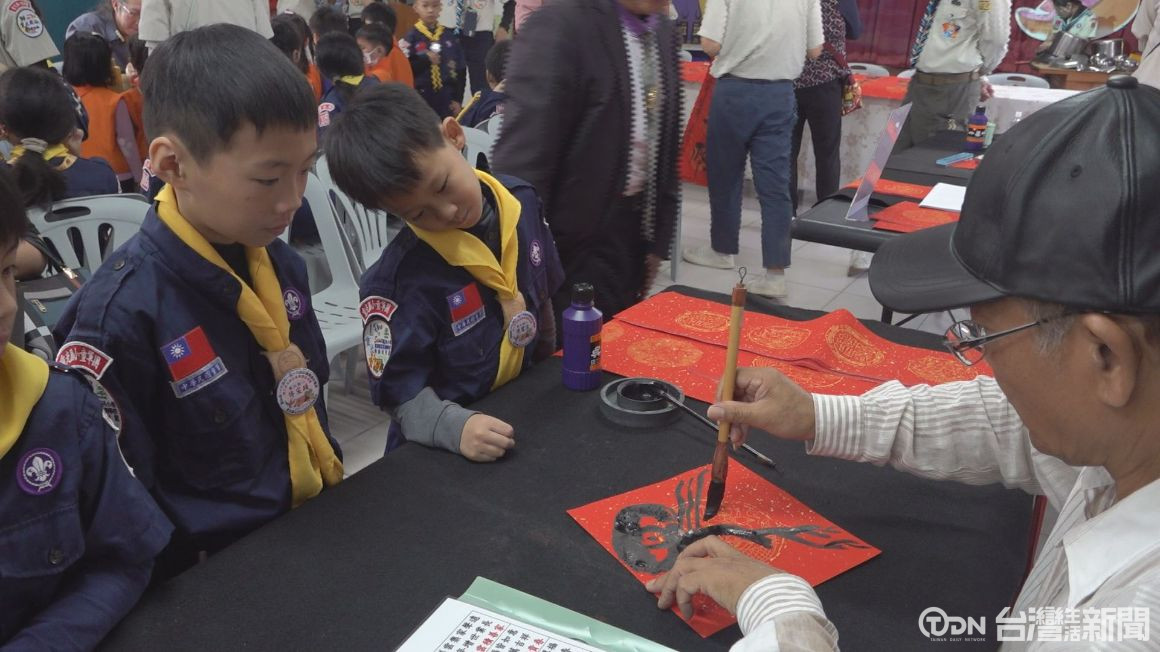 ▲活動搭配學校4大核心課程之一-技藝傳承,邀請雲林縣書法協會的書法老師們前來寫春聯 / 記者 王可萱 攝