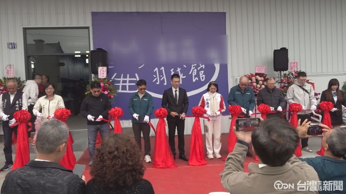 ▲在長官貴賓剪綵以及鳴炮聲下,南投市目前唯一一間民營羽球場正式開幕/記者 廖韋凌攝