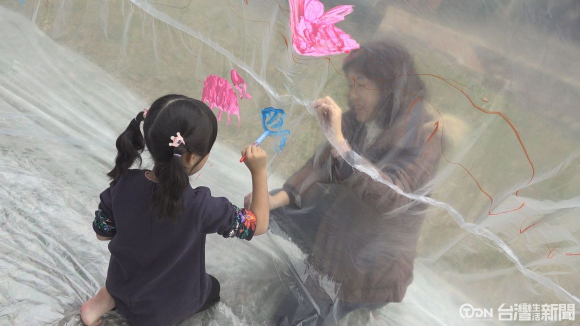 ▲孩子們用奇異筆勾勒出她們的想像世界/記者 李晉仰攝
