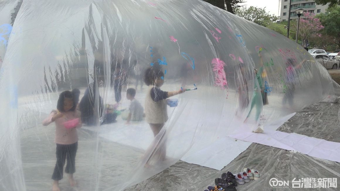 ▲走進大汽球的空間,無論是孩子或大人,都能無拘無束的創作/記者 李晉仰攝