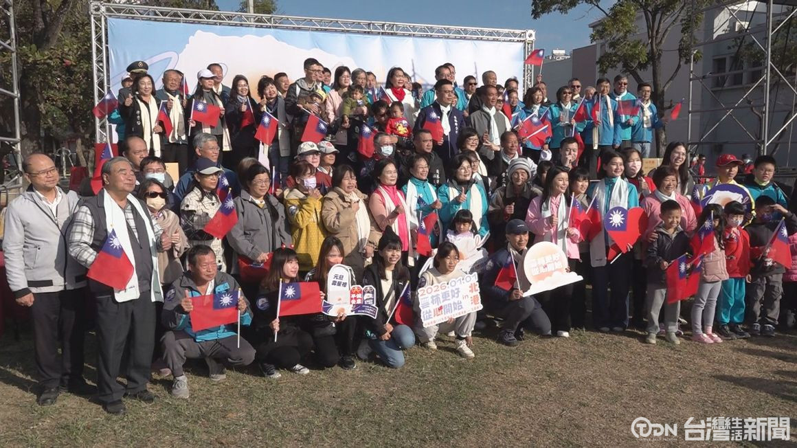 眾人一同迎接新的一年。雲林縣115年度元旦升旗典禮本次來到北港鎮辦理,吸引約2000人共同參與,現場也為百位元旦壽星切蛋糕慶生,隨後健行至朝天宮參拜,氣氛相當熱鬧。