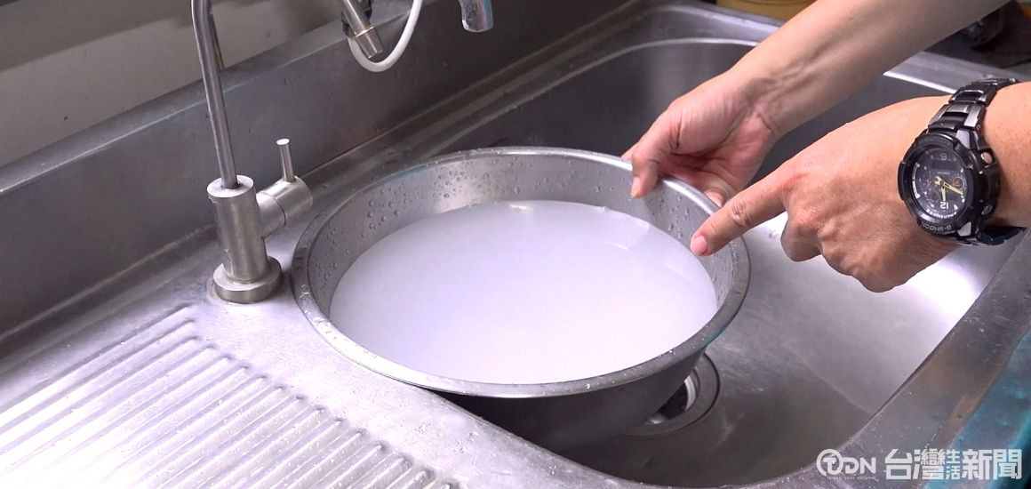 ▲民眾打開水龍頭,流出來的水卻是呈現乳白色狀態/記者 陳昭安攝