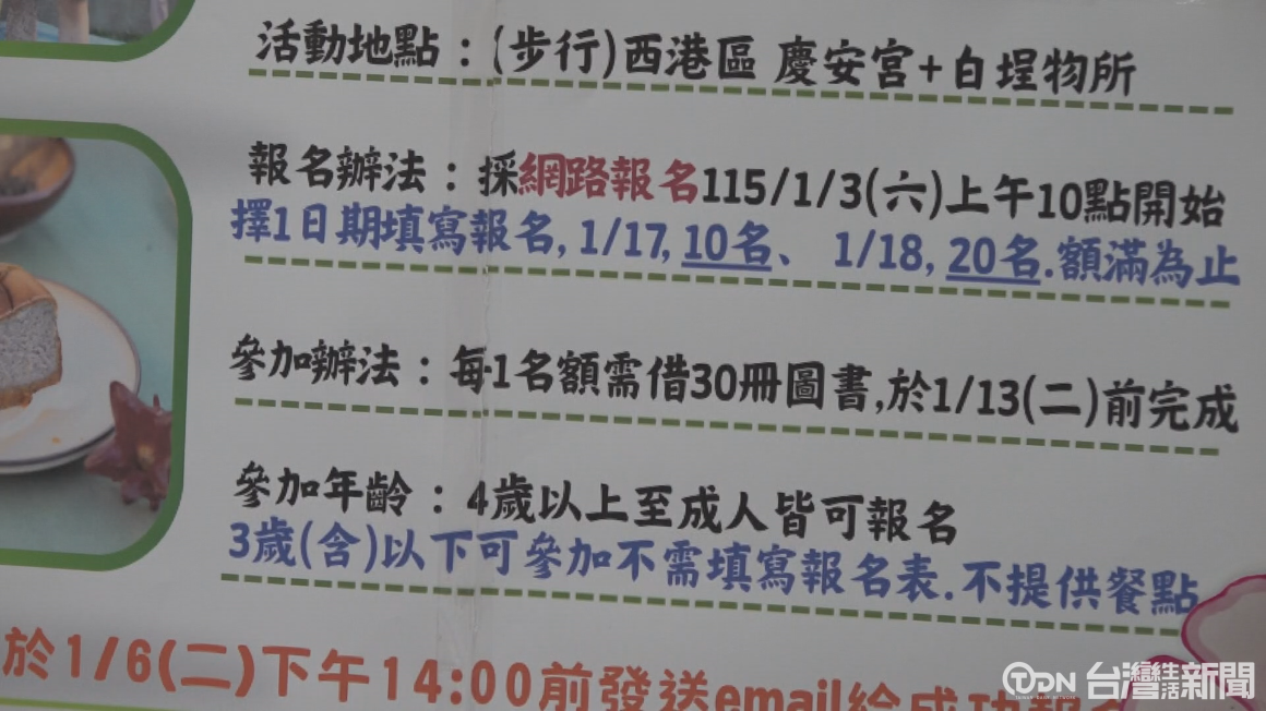 ▲西港圖書館結合地方特色舉辦小旅行,從1月3號開始只要是在圖書館借30本書就可以免費報名。/記者 沈孟瑩攝