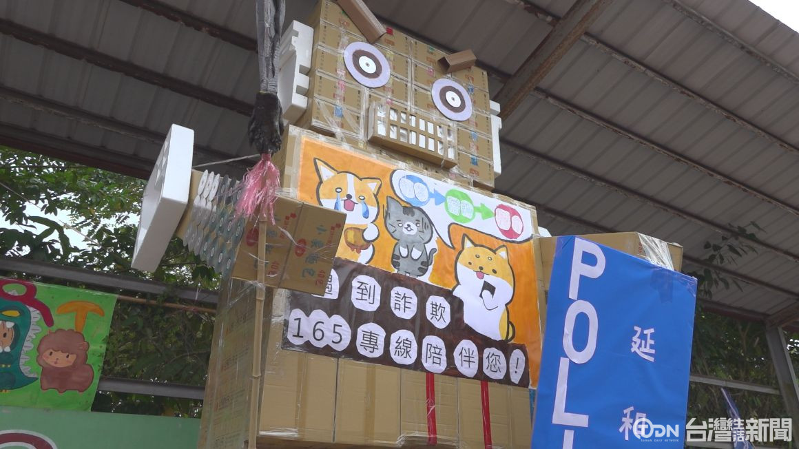 這隻是學生用這次減碳主題製作的機器人,看見學生的用心投入,環保機器人相當壯觀,用實際行動支持減碳活動。