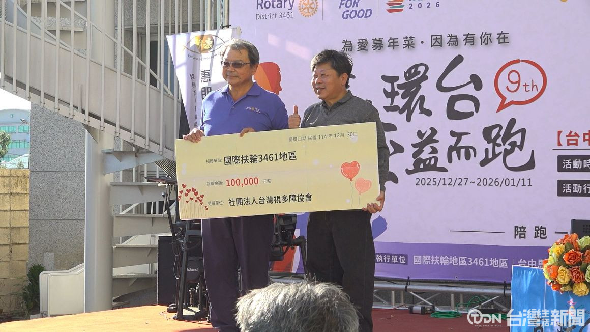 與會貴賓在主持人的倒數聲下,一同鳴槍,領跑者以及視障跑者一同向前跑,由社福台灣盲人環台協會所舉辦的,第九屆盲人環台為公益而跑活動,這天來到台中市私立惠明視障者教養院,希望透過路跑活動,能夠幫全台的弱勢家庭募集年菜,不少人士連續多年參與。