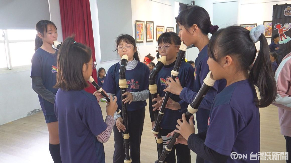 ▲南光國小直笛隊學生認真練習,為下一次的表演做最好的準備。/記者 陳佳昇 攝。