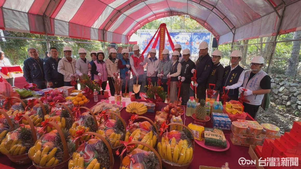 魚池鄉頭社村長照整合型服務場館動土典禮,在鹿篙社區戰鼓隊精彩的表演之下,熱鬧進行。隨後在副縣長王瑞德率領下,祭拜天地,祈求工程平安順利。