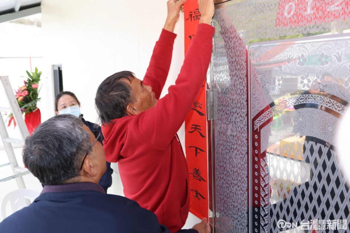 ▲居民在新家貼上春聯,代表平安入住、展望新的生活。/ 臺南市政府提供