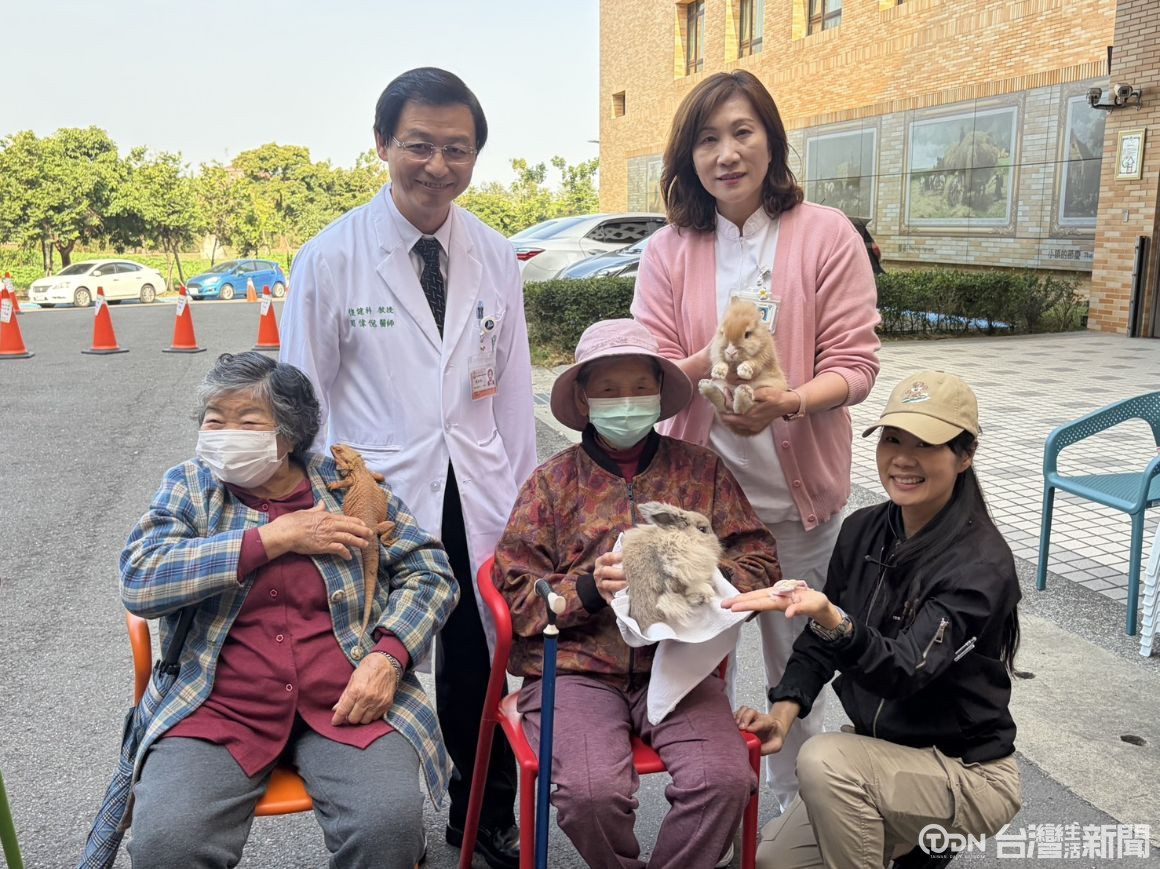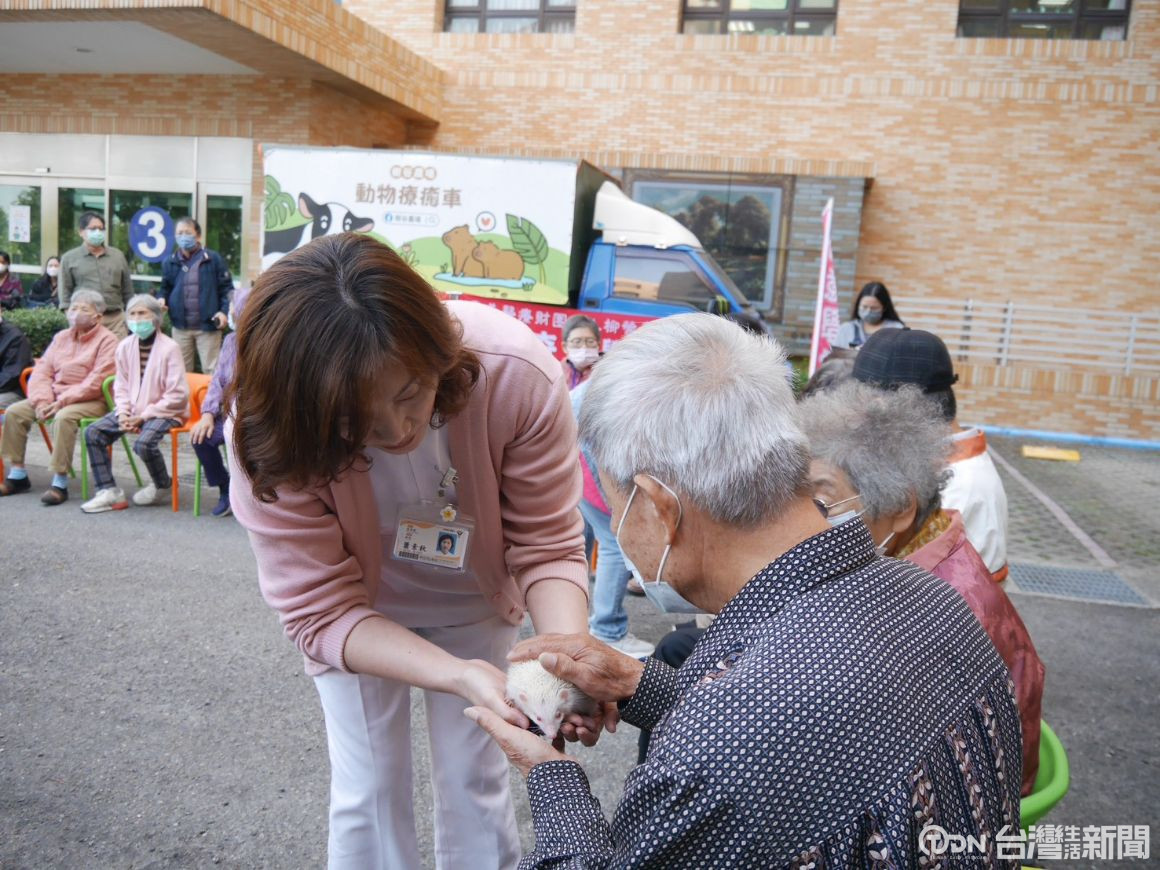 ▲透過和動物的情感交流,陪伴失智共照中心的長輩帶來身心放鬆和溫暖支持。/圖 柳營奇美醫院提供