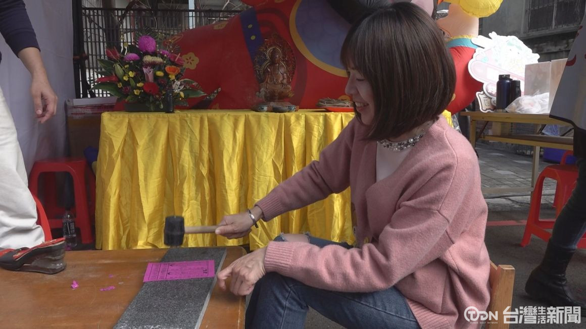 ▲民眾體驗「打小人」儀式,把煩惱敲掉,也替生活找個放鬆出口/記者 蔡育楷 攝