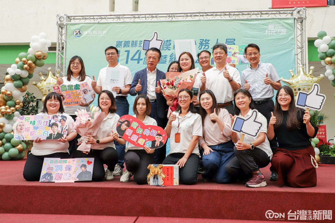 嘉義縣政府日前舉行114年度模範與績優公務人員頒獎典禮,獲獎者的家屬及同仁到場祝賀,縣長翁章梁親自頒獎,表揚6名模範與績優公務人員,以及2名服務績優人員,其中農業處專員林宛嬋不僅獲選縣級模範,更榮獲行政院模範公務人員。林宛嬋表示,她長期協助推動「嘉義優鮮」品牌,透過縣府共同品牌整合在地小農,協助拓展銷售通路,盼為農民打造更公平、有前景的產業模式。縣長翁章梁指出,受獎者都是各單位肯定的優秀人才,期盼更多公務員以他們為榜樣,讓政府施政持續進步,為嘉義縣帶來更大助益。