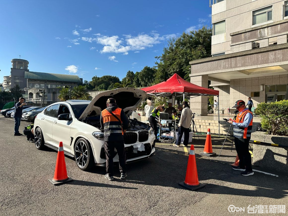 ▲車輛接受環保局的噪音檢測。/交通警察隊提供