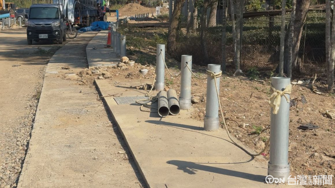 ▲目前道路拓寬工程接近完成,因為自來水管線工程施設的用地,需要民眾蓋土地同意書,讓整個工程進度進退兩難/記者 范宏坤 攝