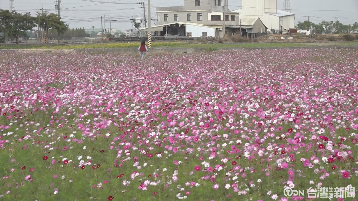 ▲後壁區泰安宮附近的休耕田現在正化身繽紛花海,吸引不少民眾前往。/記者 沈孟瑩攝