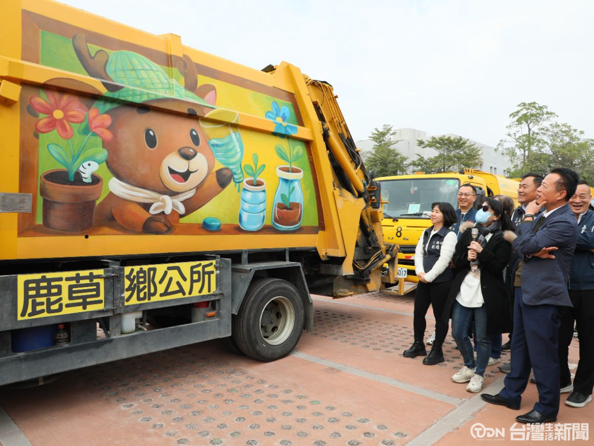▲嘉義縣環保局幫垃圾車換新裝,各鄉鎮發揮創意把在地特色畫上車身,讓垃圾車搖身一變成為街頭最吸睛的環保風景/記者黃培怡 攝。