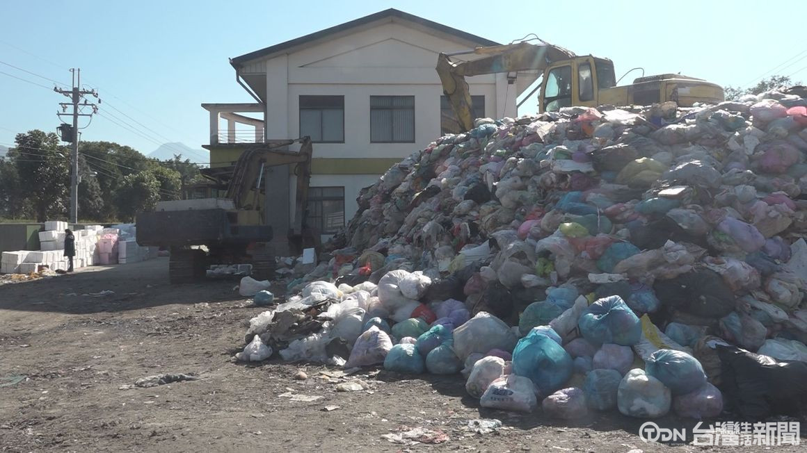 ▲場地空間不大的埔里鎮清潔隊部,堆滿待清運垃圾,已無空間堆放回收的廚餘。/記者 王昭聖 攝
