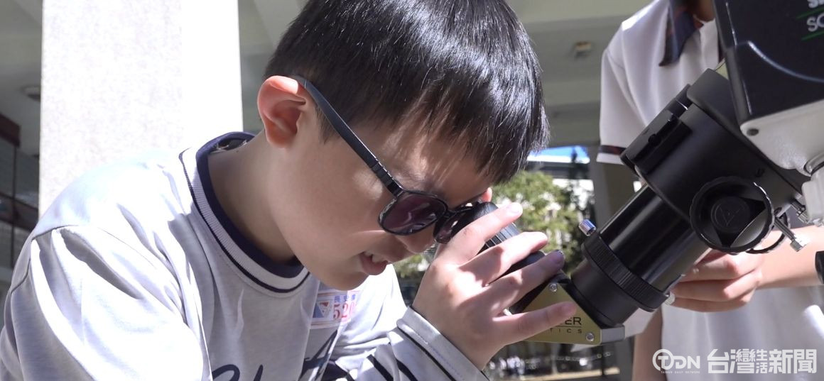▲在解說員的帶領下,大家開始以天文望遠鏡觀測太陽黑子/記者 林佳樺攝