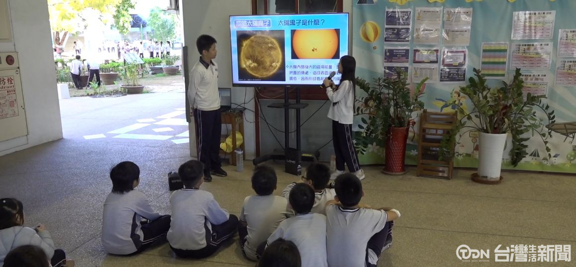 太陽黑子11年為周期,在2025到2026年也是太陽黑子極大期,活動更旺盛噴發的更多,長安國小延伸太陽運動課程,以天文社團解說員帶領五六年追光者,進行天文快閃太陽黑子觀測活動,也加入天文常識的講解。