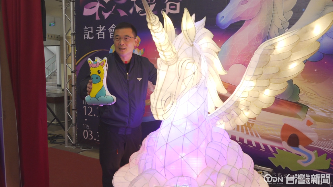 ▲斗六市公所將於1月10日在膨鼠森林公園舉辦「115年斗六燈會」啟燈晚會,今年燈會以「馳光之翼」為主題,跳脫傳統馬年意象,主燈以獨角獸來做呈現/記者 江儀 攝