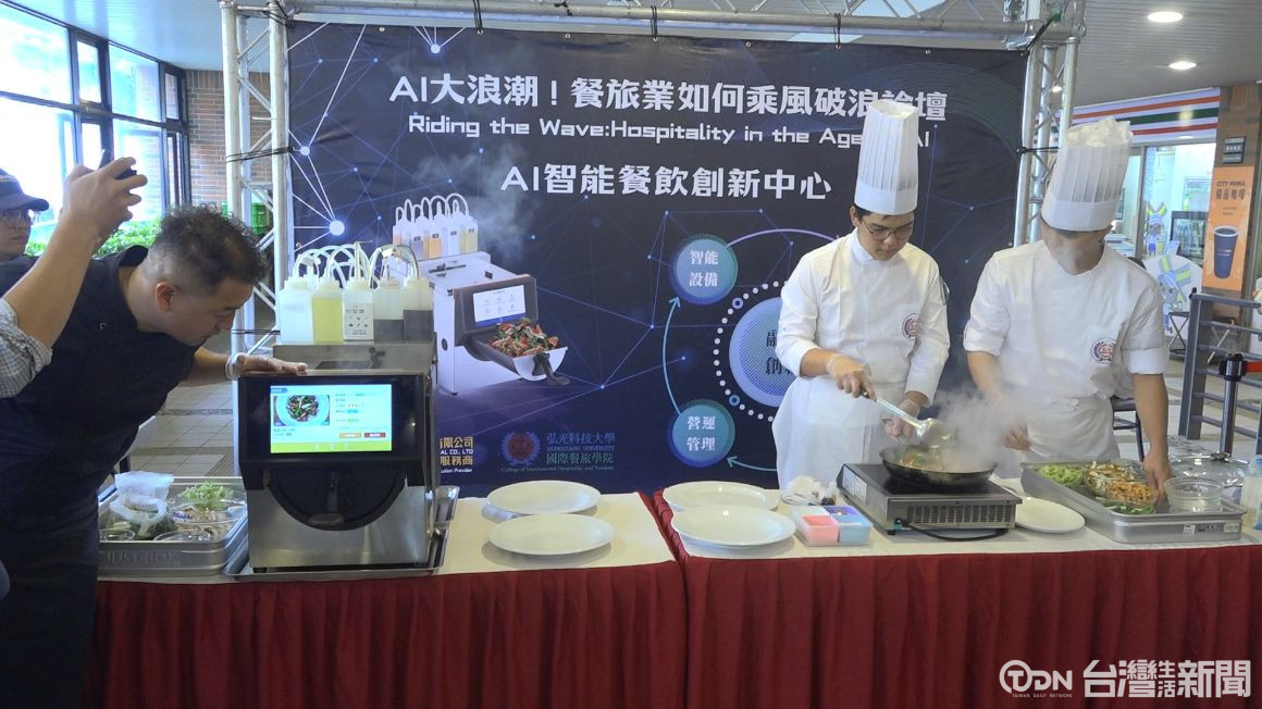 隨著AI技術快速發展,餐旅業也迎來智慧化新時代,因此弘光科大這天也特別舉辦研討會,並安排真人廚師與AI 智能炒菜機,進行客家小炒 PK賽,現場還邀請13名學生進行盲測投票,最終結果出爐,AI智能炒菜機以7票對6票,一票之差險勝真人廚師。