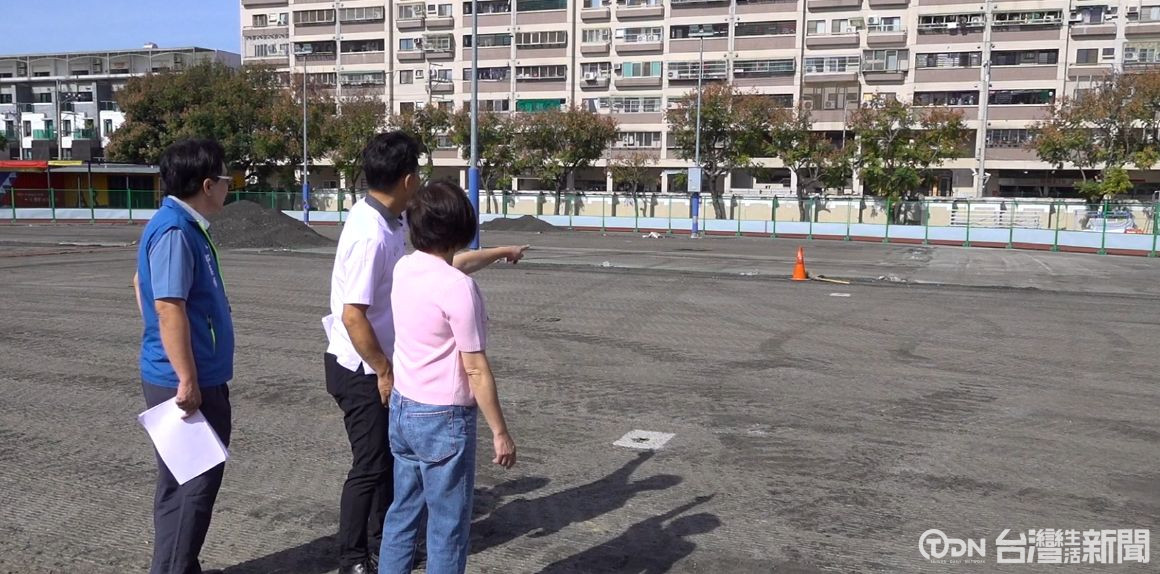 ▲長億高中校內操場與球場鋪面老舊、局部龜裂,立委何欣純爭取經費,進行整改工程/記者 賴秋峰攝