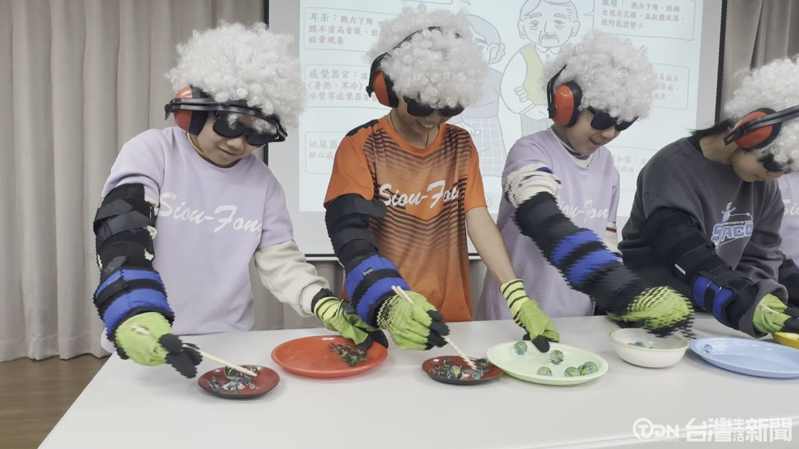 ▲透過這次「變老遊戲」,希望能讓孩子深刻體會長輩的不便,進而在生活中實踐「敬老、愛老、助老」的精神。/記者 周有勝 攝