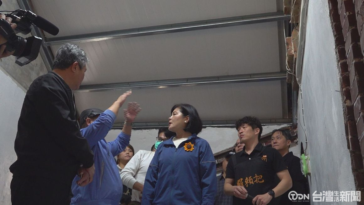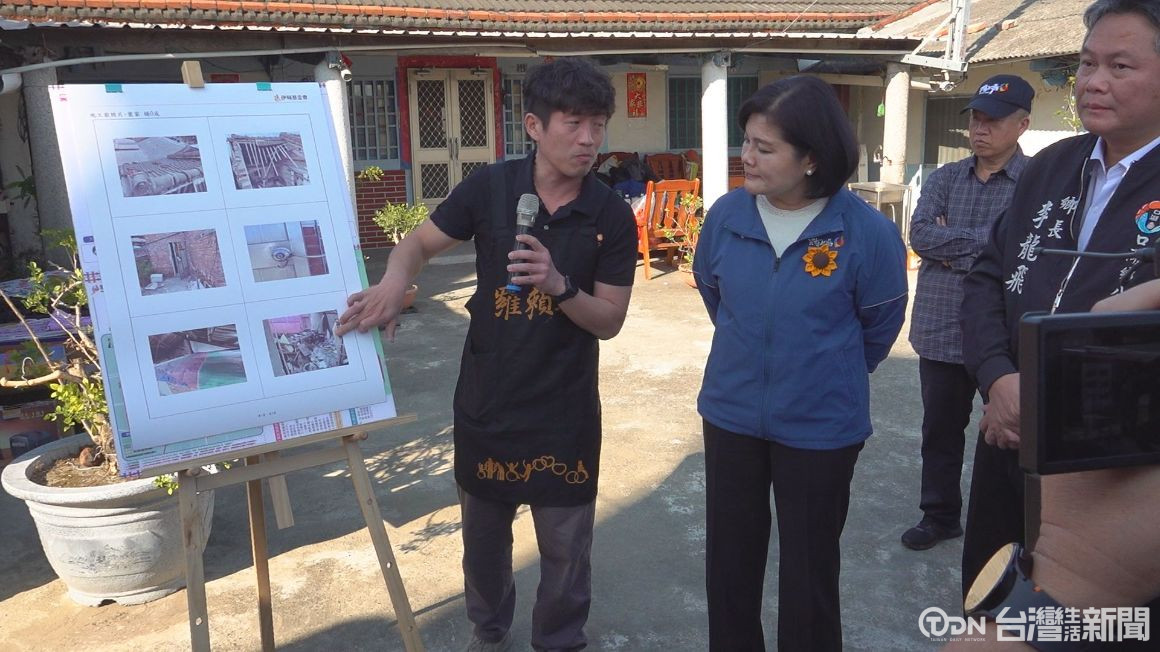 ▲伊甸基金會的志工向縣長張麗善說明修繕前後的狀況。/記者 陳佳昇 攝。