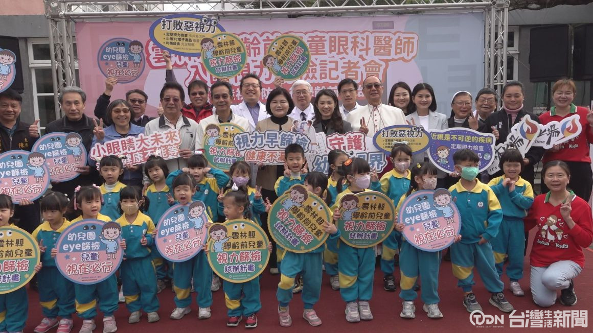幼兒園學童跳保護眼睛的舞蹈替記者會開場,為及早發現兒童的視力問題,雲林縣政府推動「學齡前兒童視力篩檢試辦計畫」,16號上午辦理發佈記者會,縣府指出,本縣113學年度國小一年級學童視力不良率是26.6%,至國小六年級更高達將近60%,視力不良情形大幅增加,本計畫的目的在於,將預防的防線,提前到幼兒園,不讓孩子錯過治療的黃金期。