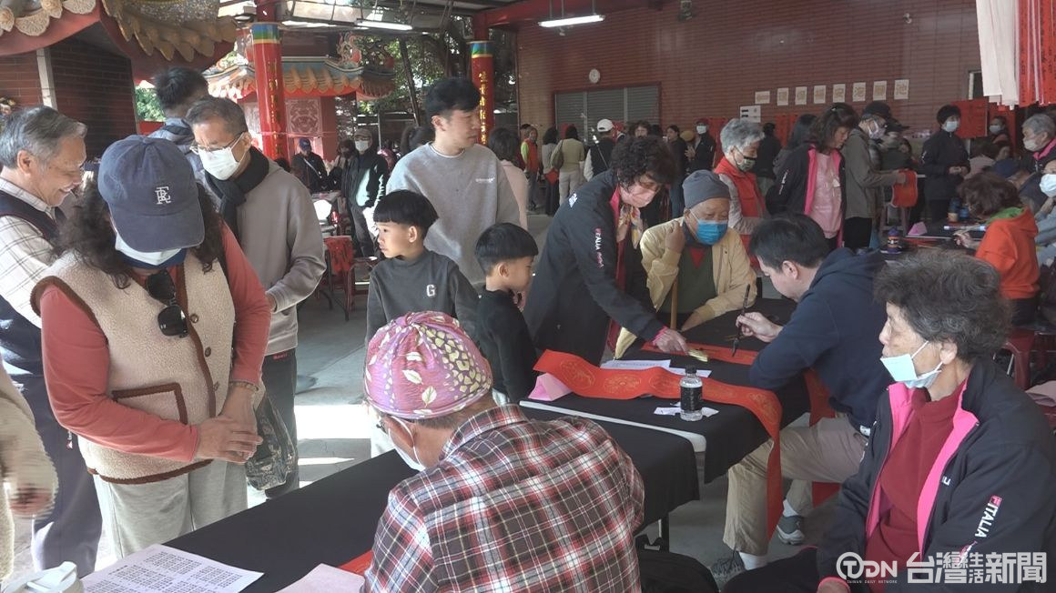 ▲圖為草屯鎮新厝里舉辦春聯揮毫活動/記者林妤昕攝