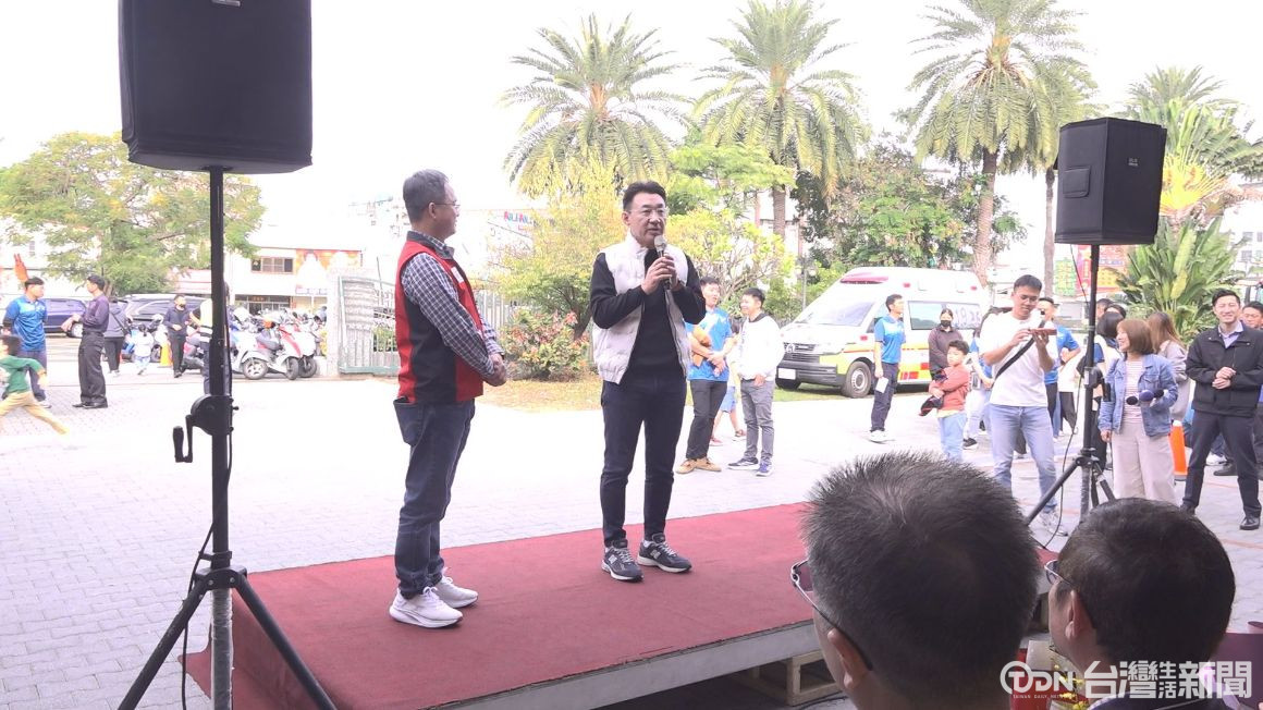 ▲藍營台中市長提名協調不成,立法院副院長江啟臣及立委楊瓊瓔假日仍勤跑行程/記者 李晉仰攝
