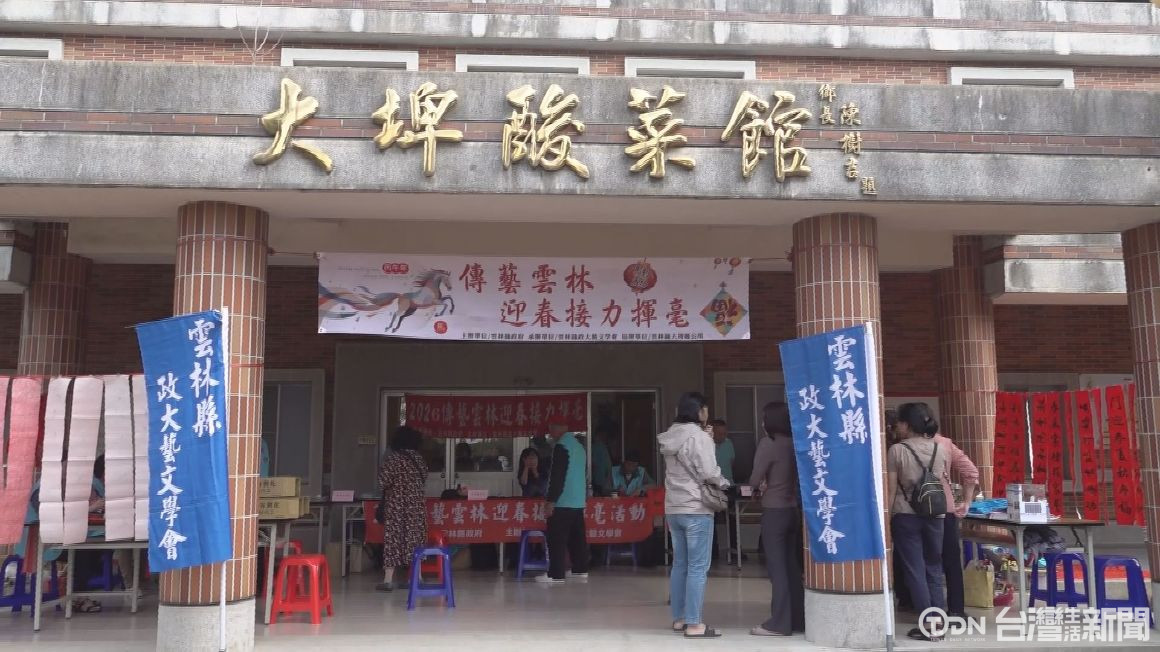 年節將近,雲林縣文觀處今年再次結合傳統習俗,推廣書畫藝術,串連16個文化館舍跟12個藝文團體辦理「傳藝雲林迎春接力揮毫」,這天來到大埤酸菜文化館,由政大藝文學會的書法老師現場寫春聯、畫年畫給民眾索取,這場還媒合到雲林縣特殊教育關懷協會來募集發票,用藝文的力量來做公益。