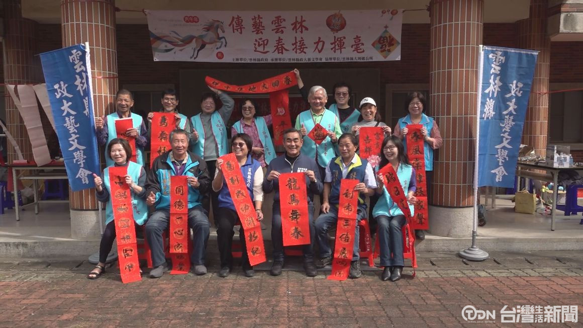 7位書法老師現場寫春聯、畫年畫,大埤酸菜文化館這天熱鬧滾滾,文觀處為推廣書畫藝術,每年過年前,都會號召縣內的藝文團體,辦理「傳藝雲林迎春接力揮毫」,大埤場由政大藝文學會負責,特別結合雲林縣特殊教育關懷協會募集發票,用藝文的力量來做公益