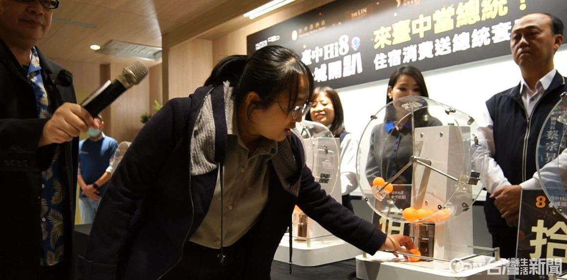 現場眾人見證,並且透過網路公開直播,台中市觀旅局推出的「來台中當總統-住宿消費送總統套房」活動第二場次,這天在觀旅局長等人的手中,抽出了兩位幸運兒,累積有效抽獎券超過24萬張。