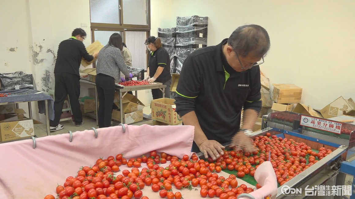 鹽水區的鹽地番茄,因為獨特的鹽地土質和氣候條件,種植出的番茄口感和風味都深受消費者喜愛,成為當地重要特色農產,每年12月開始陸續進入採收期,現在來到鹽水區農會可以看到番茄被載到集貨場,進行分級包裝的畫面。