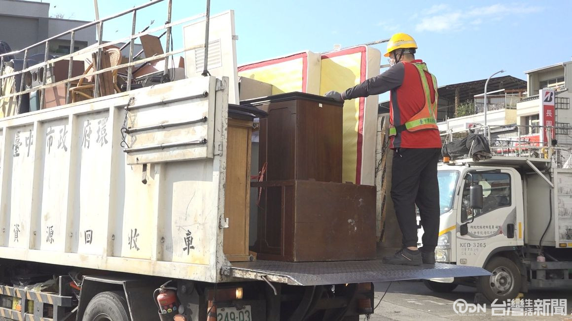 一整車的廢棄家具,塞滿7頓資源回收車,農曆新年前夕,出現清運潮,以南屯區清潔隊來看,增加有三成左右。