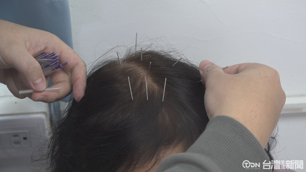 ▲治療時,中醫會依每個人的體質來做調整,用針灸刺激身體的穴位。/記者 周有勝 攝