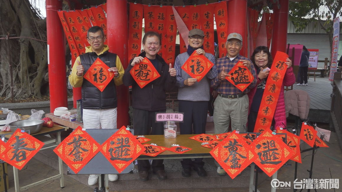 ▲校方邀請書法家進行春聯揮毫,完成闖關遊戲即可免費兌換/記者 江儀 攝