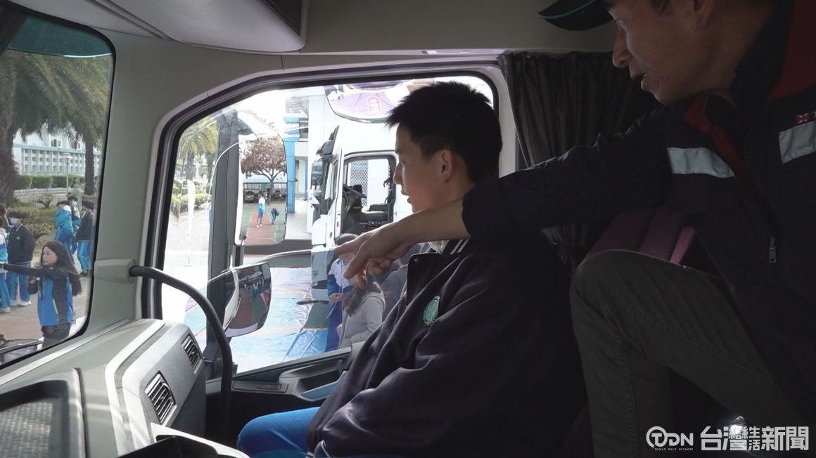 ▲參與學生表示,坐上駕駛座才知道,大車雖然看起來很高,不過視野沒有想像中開闊,遠離大車才能遠離危險。記者林虹伯/攝