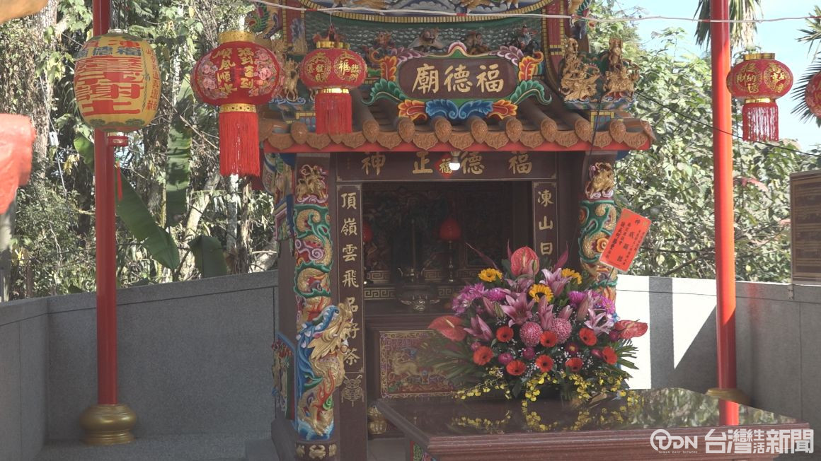 ▲凍頂福德廟一開始只是以石板搭建的小廟宇,但在民國108年出現嚴重的損毀,不敷使用,在請示土地公之後,選擇易地重建。/記者 周有勝 攝