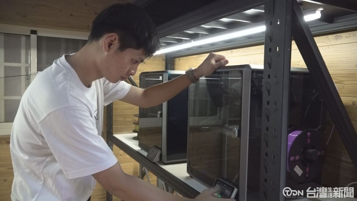 親手操作機器,3D列印機一層一層堆疊成形,這盞造型獨特的燈罩,從設計到製作,全都出自南投青年曾浚祐之手。