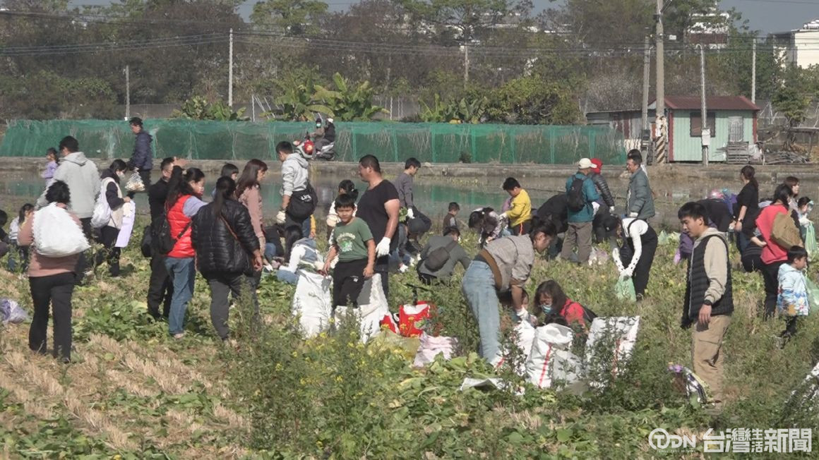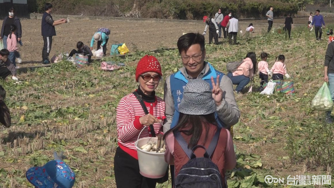 ▲南投市公所1/24(六)在營南社區附近的稻田舉辦食農教育免費採蘿蔔活動,吸引眾多親子參與/記者 廖韋凌攝